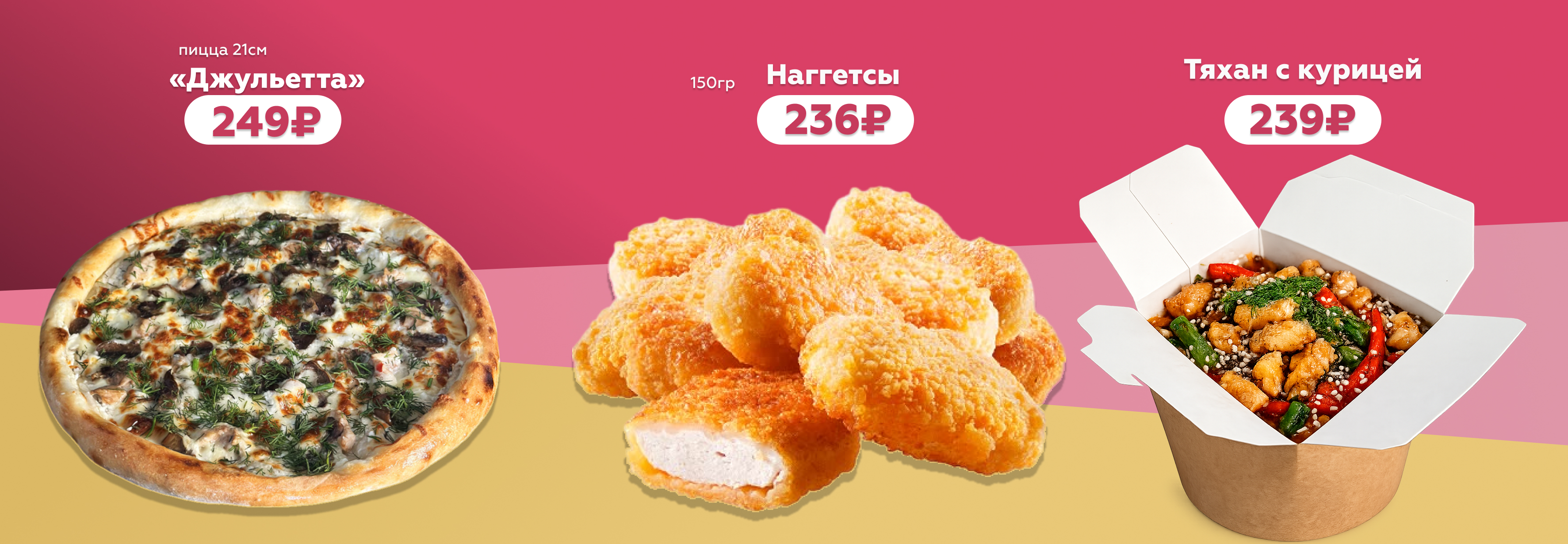 Наша цель - вкусная, доступная еда для каждого, с доставкой на дом! У нас более 250 блюд в меню, поэтому каждый найдёт что-то себе по душе! Мы экономим Ваше время, чтобы Вы не тратили его на готовку, а занимались своими делами или отдыхали, посвящали освободившееся время семье, друзьям, любимым или своему хобби.